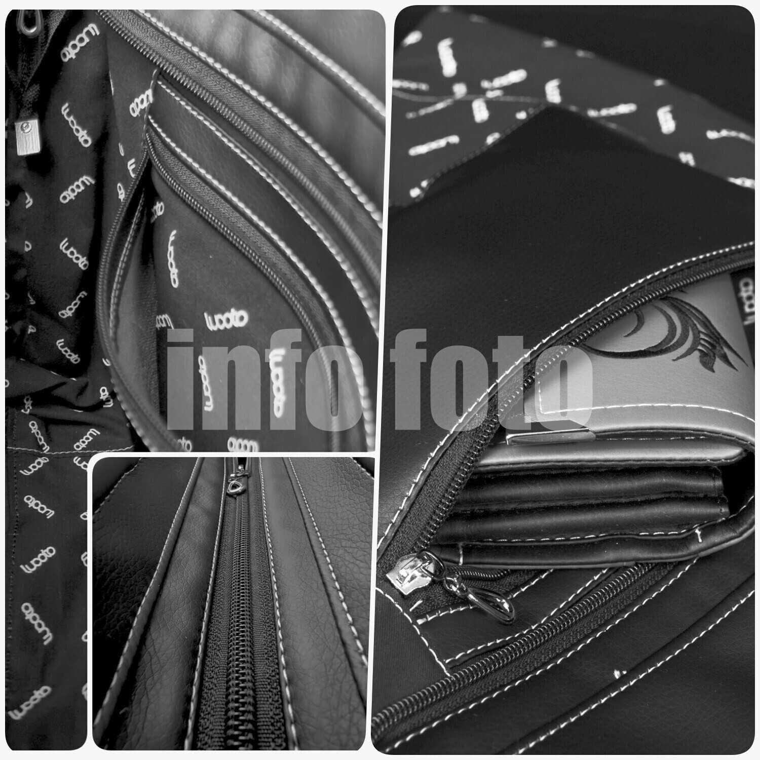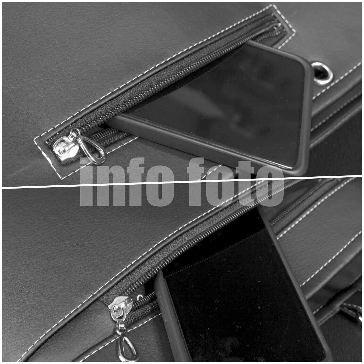Obrácené zapínání Obrátíme zapínání, tak aby kabelka držená, nebo nošená na levém boku (EXTRA) měla jezdec zipu při uzavření vepředu. |
